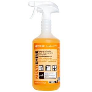 MULTISHINE profesjonalna pianka do czyszczenia mebli i powierzchni zmywalnych Multishine to skuteczna pianka do czyszczenia mebli, wyposażenia oraz wszystkich powierzchni zmywalnych. Szybko usuwa kurz, codzienne zabrudzenia i tłuste plamy, nie pozostawiając smug ani osadów. Sprawdza się zarówno w domu, jak i w biurach, hotelach, restauracjach oraz innych obiektach usługowych. Cena brutto: 1l – 5l –